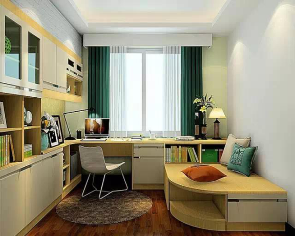 顏色對于書房的整個環(huán)境是最直接的是視覺沖擊,房間的顏色應該盡量保持一致,一般來說選擇深沉的顏色,整個環(huán)境就顯得比較嚴肅,比較容易進入狀態(tài)。顏色選擇因人而已,按照自己的需求大膽選色,創(chuàng)造一個自己喜歡的書房環(huán)境。