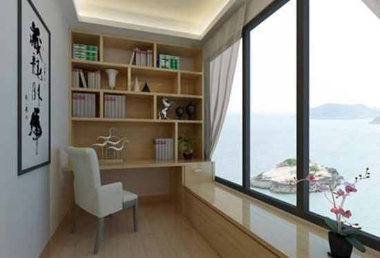 房子面積小,一般都不設有獨自的書房或工作間,其實稍加改造,調配全體書櫥、寫字臺、伸縮式吊燈、休閑椅就能將陽臺“裝扮”成一間獨具匠心的雅致書房。既可在此與友人敘談,書寫疲倦時仍是擴展軀體、放松神經(jīng)的氧源豐厚的歇息之地。