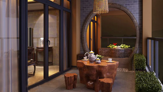 茶館改造并不需要故意的裝修,用玻璃窗把陽臺關閉后,在墻面貼上文化石,或者是仿青石板的瓷磚,天花板用雕花木線條勾邊,這些元素都定格了茶館的中式意蘊。茶館的資料以竹、木、藤、麻、布等。竹給人清雅脫俗之感,木給人以溫暖結壯之感,藤、麻給人以天然淳樸之感,而布的細膩漫長更是無物可比。