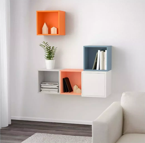 ▲這類裝飾適合沙發(fā)背景墻與沙發(fā)有一定距離的客廳,將隔板噴繪出自己想要的顏色,并加以搭配組裝。上面擺放的物件也是有講究的,屋主人的興趣、品位在這里都能盡數(shù)展出。