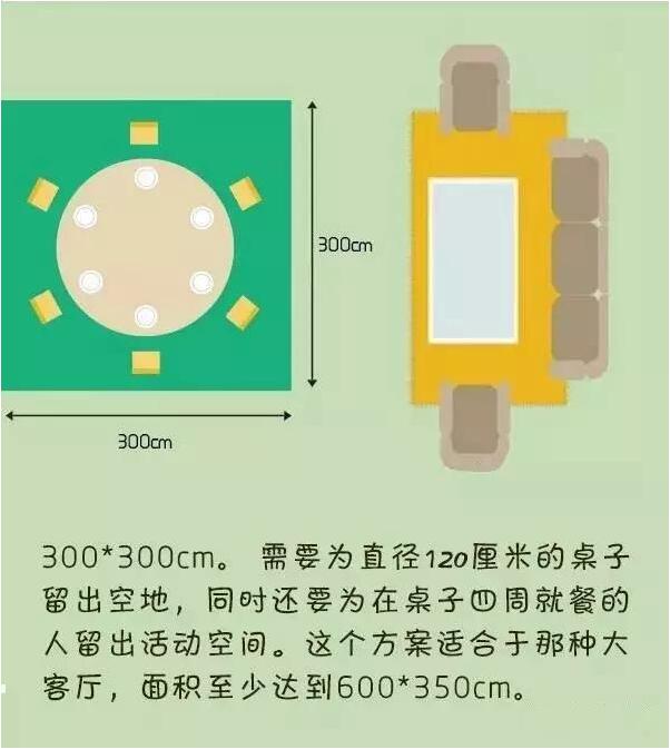 ▼一張供六個人使用的桌子擺在起居室里面要占多少面積?