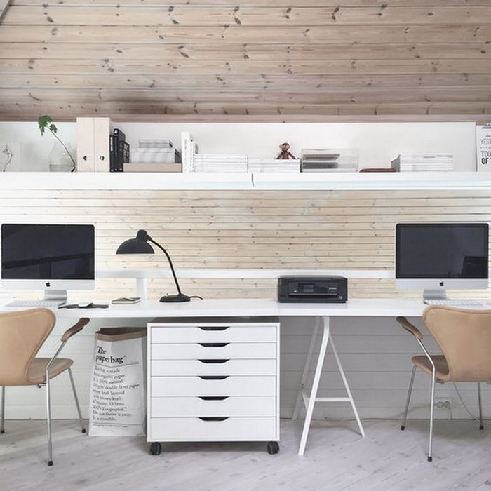 對(duì)于兩個(gè)人書桌布置,可以對(duì)著坐、并排坐或者背靠背,也可以L型轉(zhuǎn)角坐,看個(gè)人喜好和具體空間格局而定。