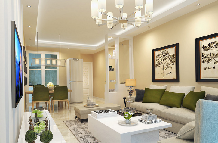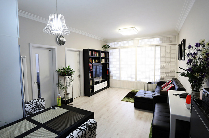 3、假如餐廳和客廳是有隔斷分開的,可以在客廳使用木地板。