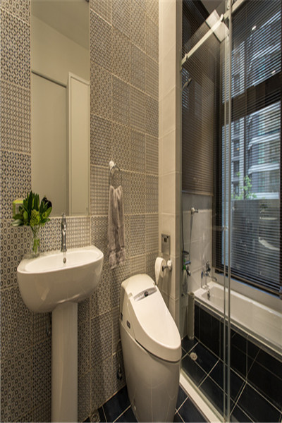 一般來說,浴室里頭50%的濕氣來自于地面,透過入墻手法的浴柜設(shè)計,能夠避免底部直接吸潮的問題,同時利用到最大限度的空間坪效。