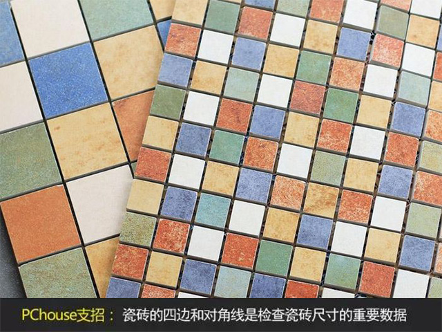 在購買瓷磚的現(xiàn)場測量。用直尺或卷尺測量,瓷磚的四邊和對角線,檢查尺寸。