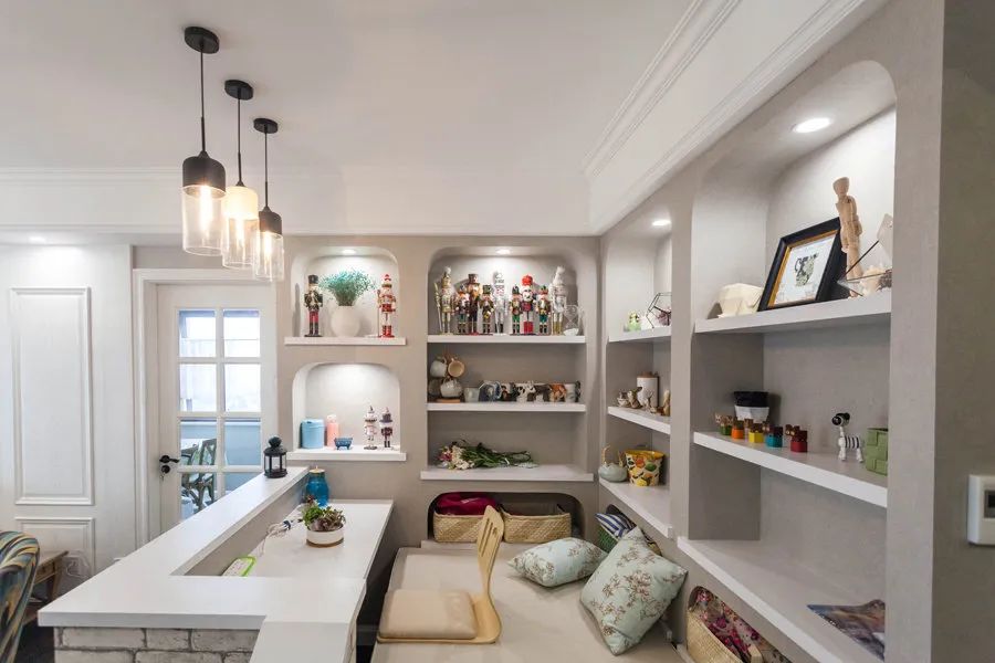 在廚房區(qū)域,用來放置一些調(diào)料或者餐具之類的物品,不僅一目了然,方便拿取,也有裝飾的效果,好看實用。