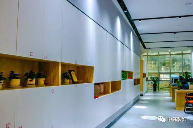 一進(jìn)去就看到一排整潔的白色儲(chǔ)物柜,一盆盆綠植生機(jī)勃勃。