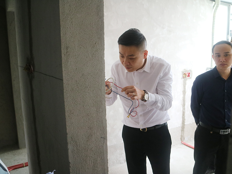 丁總在細(xì)心的查驗(yàn)水電隱蔽工程線路