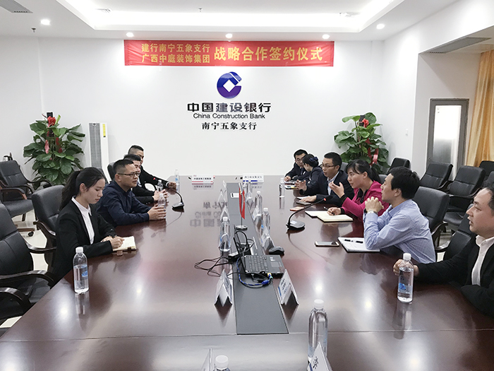 4月3日,中國(guó)建設(shè)銀行南寧五象支行與中庭裝飾集團(tuán),舉行“裝修貸款戰(zhàn)略作協(xié)議”簽約儀式。中國(guó)建設(shè)銀行五象支行郭行長(zhǎng)、何副行長(zhǎng),中庭裝飾集團(tuán)湯總、張總等一同參加了此次簽約儀式。