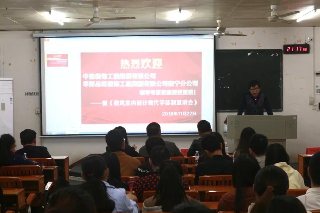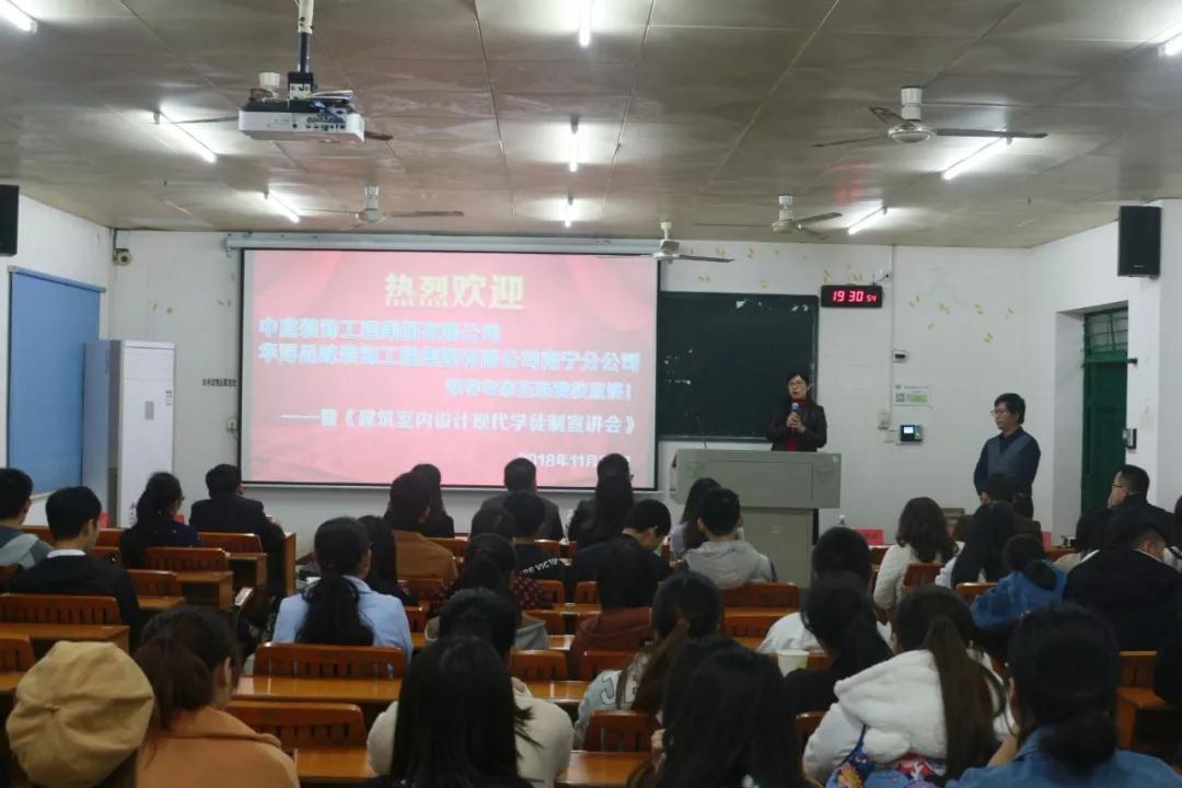 在前期的籌備活動(dòng)中,已邀請(qǐng)過廣西農(nóng)業(yè)職業(yè)技術(shù)學(xué)院老師和學(xué)生來中庭裝飾集團(tuán)進(jìn)行過參觀與交流,彼此都留下非常好的印象,2018年11月22日,我公司張立安張總帶領(lǐng)營(yíng)銷三部蘇家毅蘇經(jīng)理和人力資源部黃紅娟黃主管等人去到學(xué)院進(jìn)行宣講,讓老師和學(xué)生們更加了解中庭裝飾集團(tuán),讓他們明白,選擇我們,是正確的。
