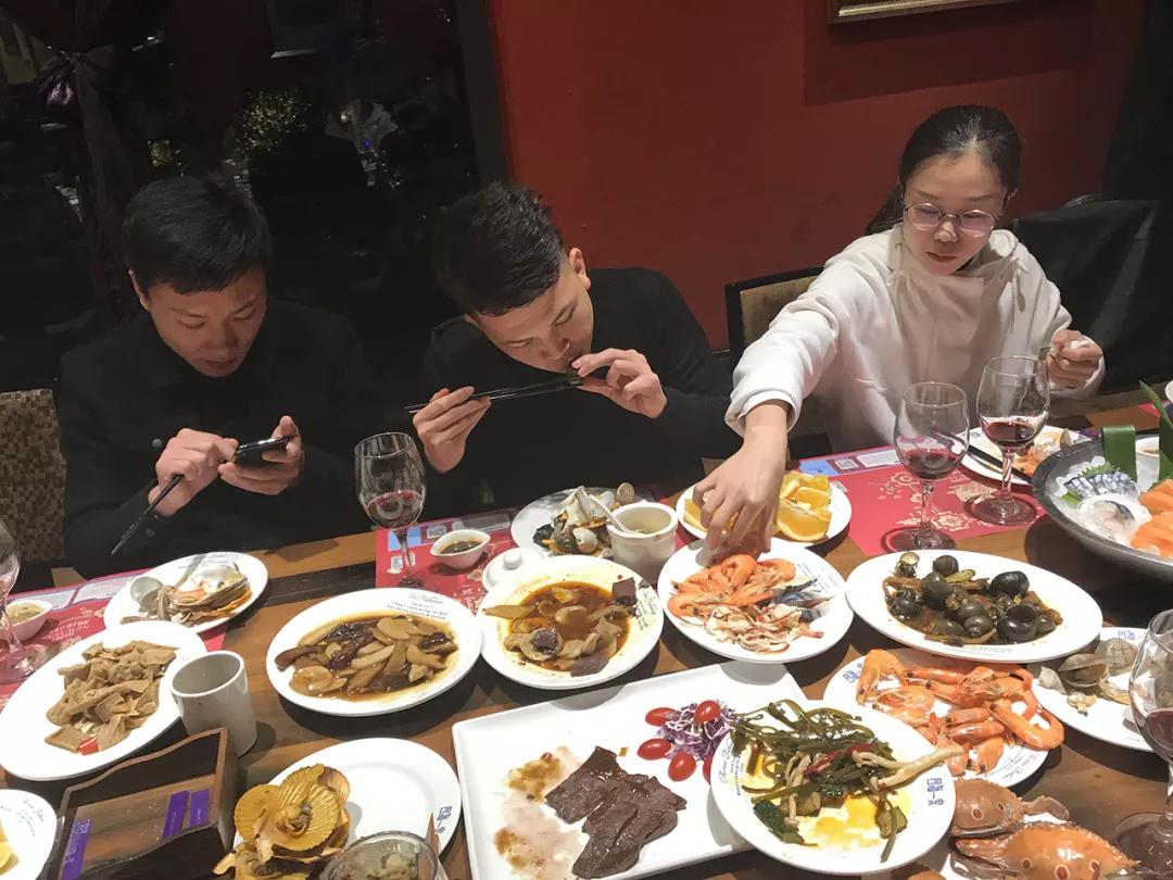 優(yōu)秀的家人們開心享用美食,品嘗他們奮斗的果實