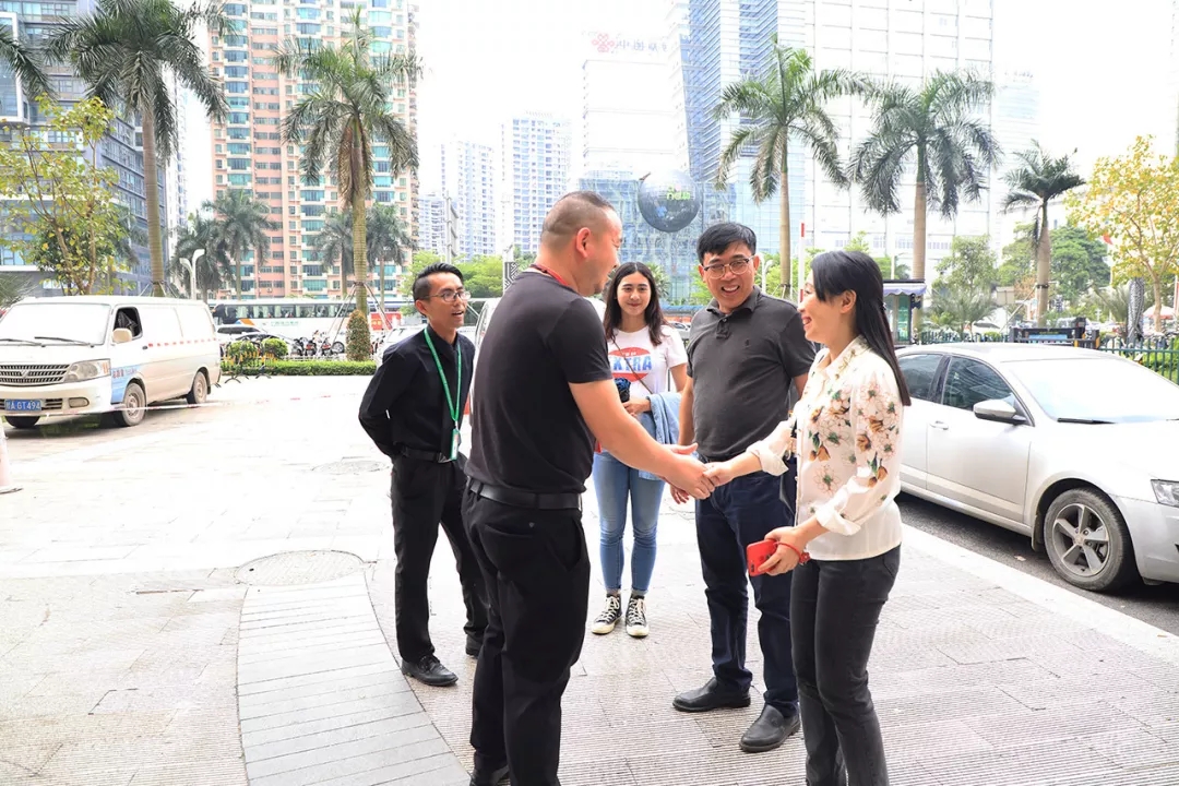 運(yùn)營(yíng)二部副總經(jīng)理劉合波在公司大門(mén)前迎接紡織工業(yè)學(xué)校陳黔校長(zhǎng)一行人。