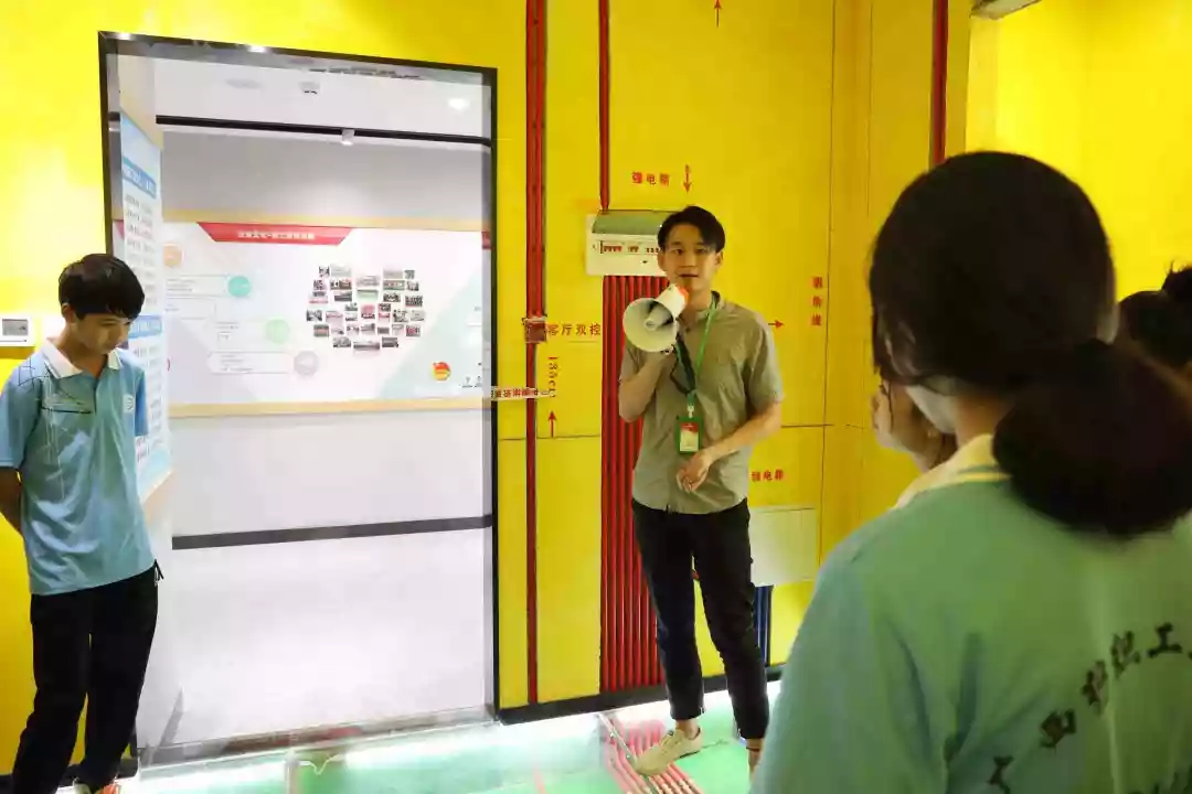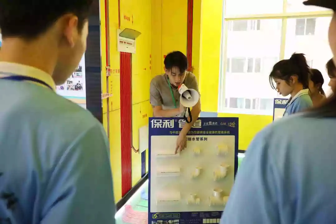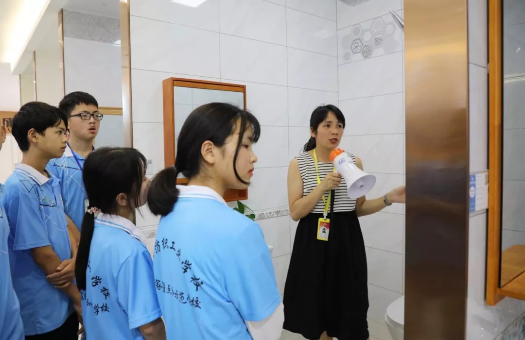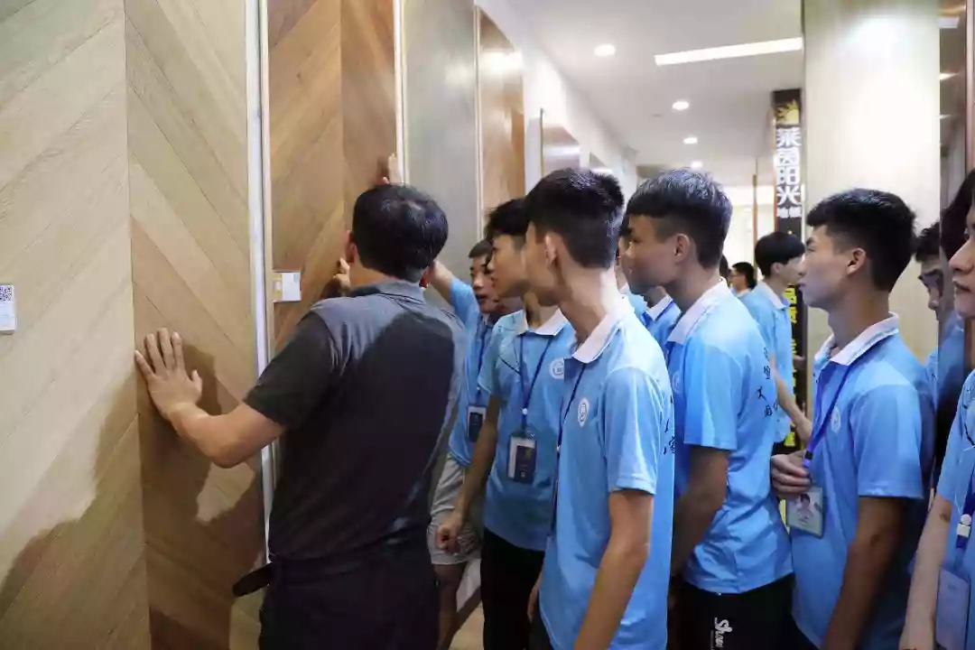 運(yùn)營(yíng)部設(shè)計(jì)經(jīng)理韋昌豪帶領(lǐng)學(xué)生參觀軟裝體驗(yàn)館、工藝樣板間,講解裝修設(shè)計(jì)、裝修工藝、水電工程用料方面的知識(shí),并解答學(xué)生們的疑問(wèn)。