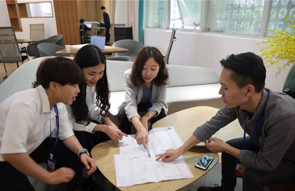 (林工和團(tuán)隊(duì)討論設(shè)計(jì)方案)
