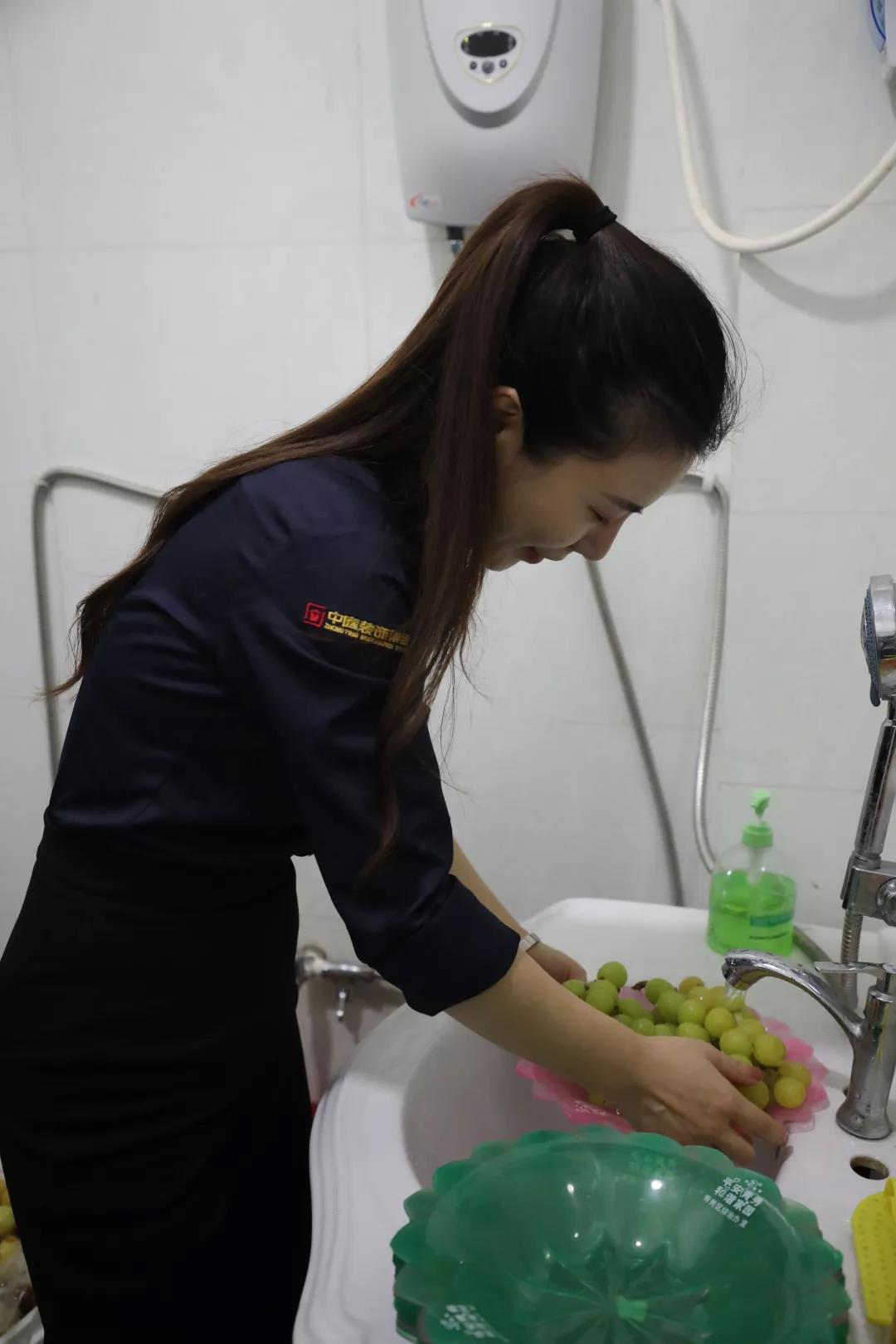 ▲小姐姐在為即將到來的老人們準(zhǔn)備水果點(diǎn)心