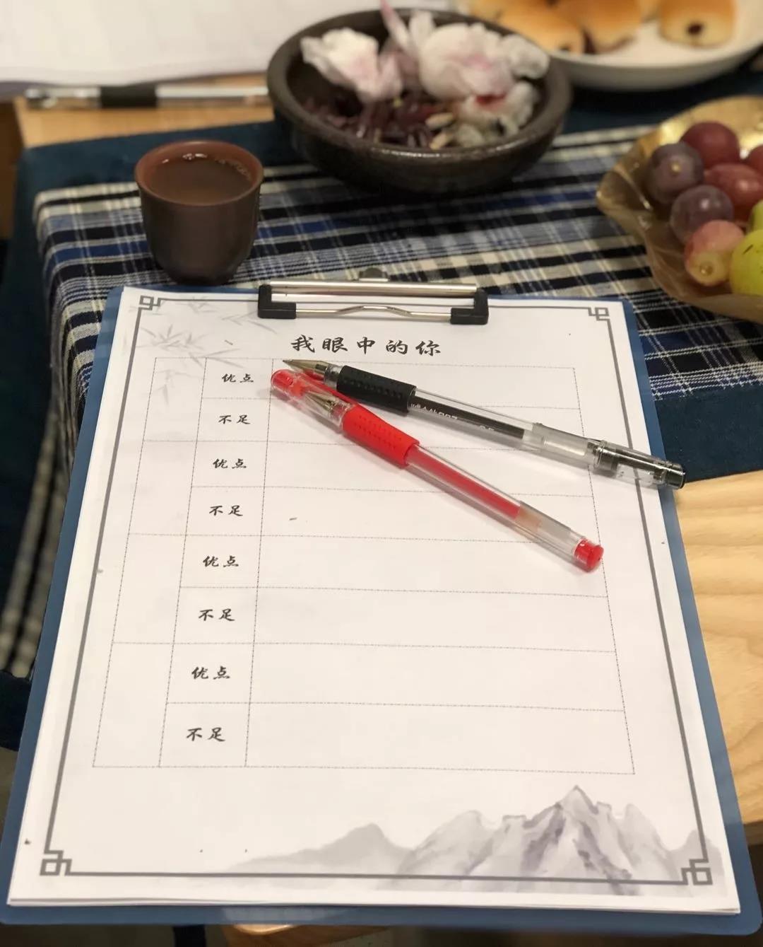 ?順勢(shì)進(jìn)行的“我眼中的你”環(huán)節(jié)——談?wù)剬?duì)彼此的看法:每位伙伴在表格中真誠(chéng)地寫(xiě)出對(duì)方在自己眼中是一個(gè)怎樣的存在(優(yōu)點(diǎn)、不足),每一個(gè)人坦然地接受真誠(chéng)的贊美和中肯的建議,通過(guò)別人更清晰地了解自己!