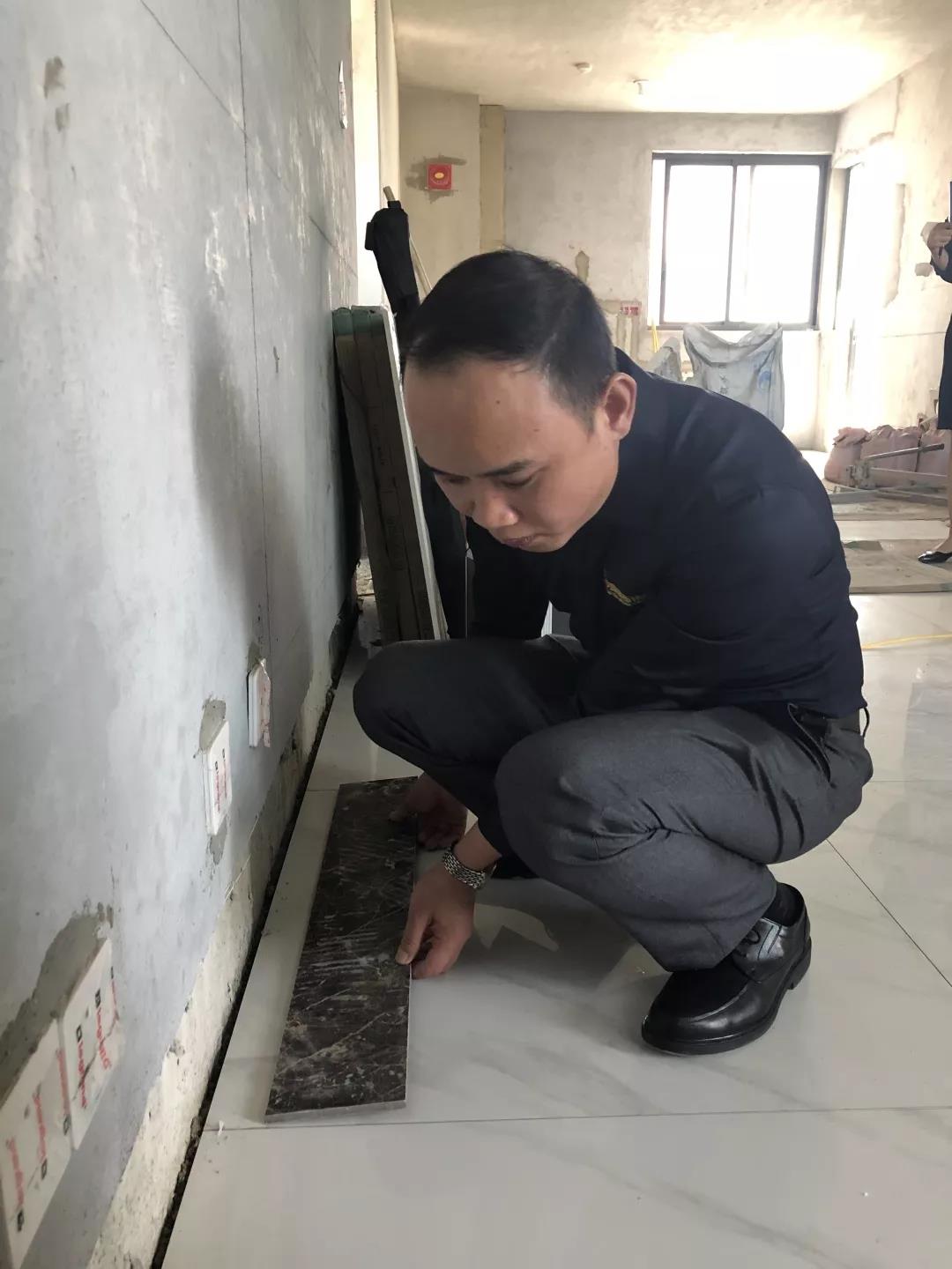 距離廣西教育廳住宅裝修集體開工儀式已過去一月有余,部分工地施工相繼進入鋪磚階段。作為教育廳住宅裝修工程總指揮,肩負著集團的使命和業(yè)主朋友們的信任,集團副總裁、工程質(zhì)量管理中心總經(jīng)理吳文戰(zhàn)時刻牽掛著教育廳工地進展情況。10月30日,吳總帶領(lǐng)質(zhì)管中心工程管理團隊赴工地現(xiàn)場對工程材料、質(zhì)量和服務(wù)三大項進行突擊檢查!
