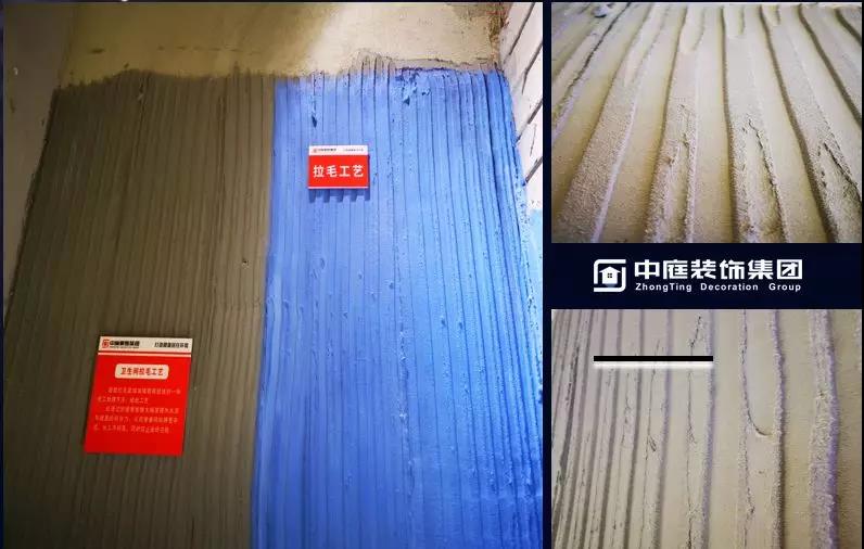 拉毛工藝:墻面拉毛是增加墻面粗糙度的一種施工處理方法,經(jīng)此工藝處理過的墻面能夠大幅度提升水泥與墻面的附著力,從而使墻磚貼得更牢固,長久不脫落,同時(shí)防止瓷磚空鼓。