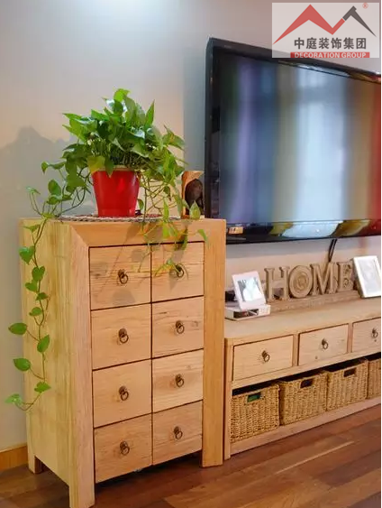 買了一棵綠色的植物放在客廳里面,顯得有活力一些吧。電視柜跟植物搭起來配一臉有沒有。