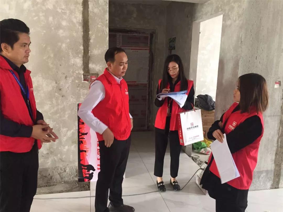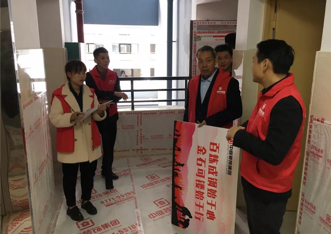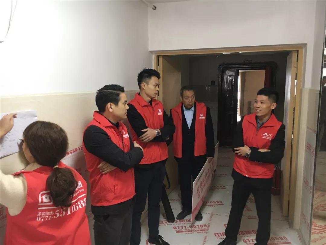 丁胡總裁與業(yè)主、施工師傅交流膩?zhàn)邮┕で闆r;交流過程中明顯可以看出師傅和業(yè)主朋友的關(guān)系非常融洽,巡檢現(xiàn)場(chǎng)其樂融融。