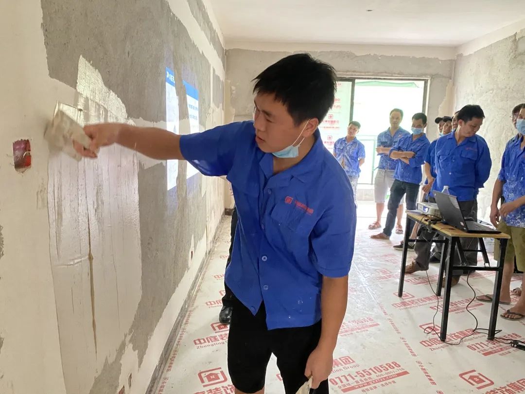 本次比賽從工程部的三個片區(qū)中精心選出優(yōu)秀水電工,瓦工,膩子工各三組,雜工5組,一共32支隊伍參加本次比賽。