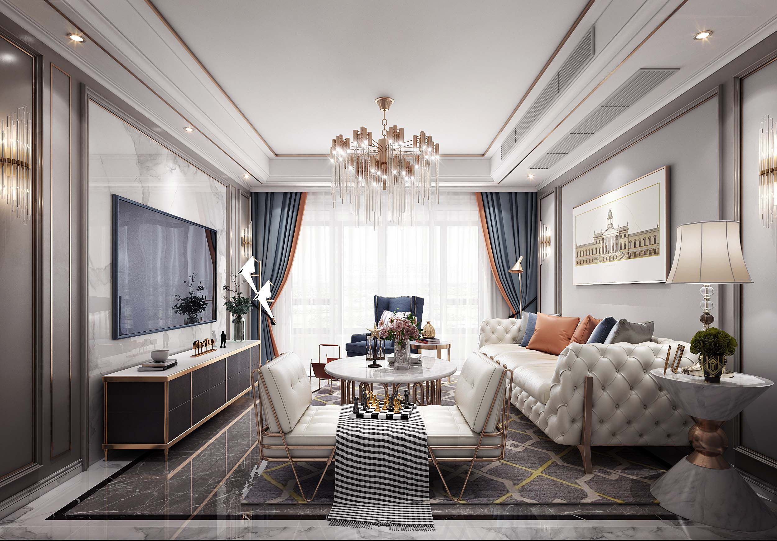 輕奢風(fēng)格丨 三居室 丨80-120㎡