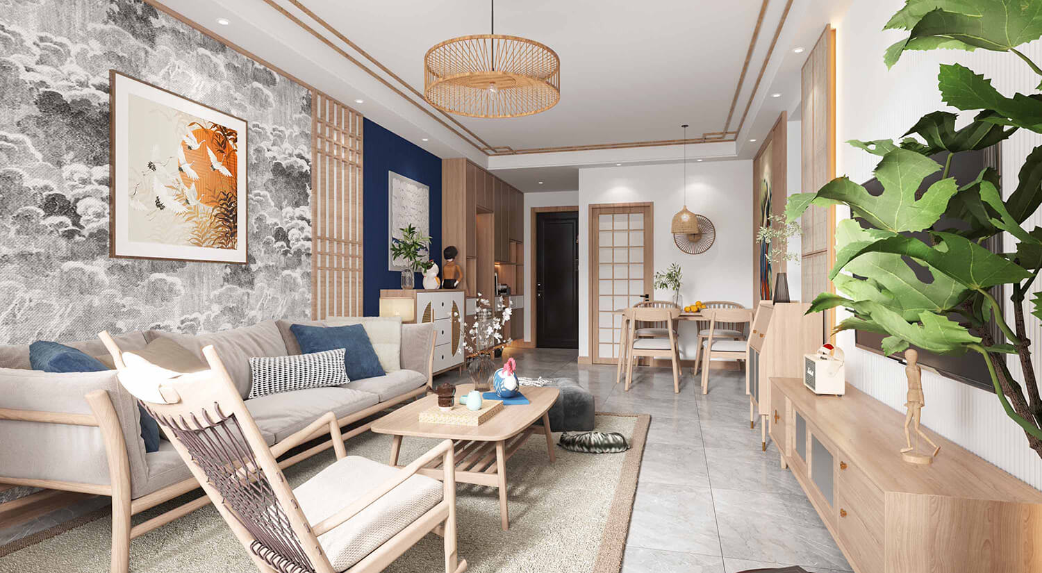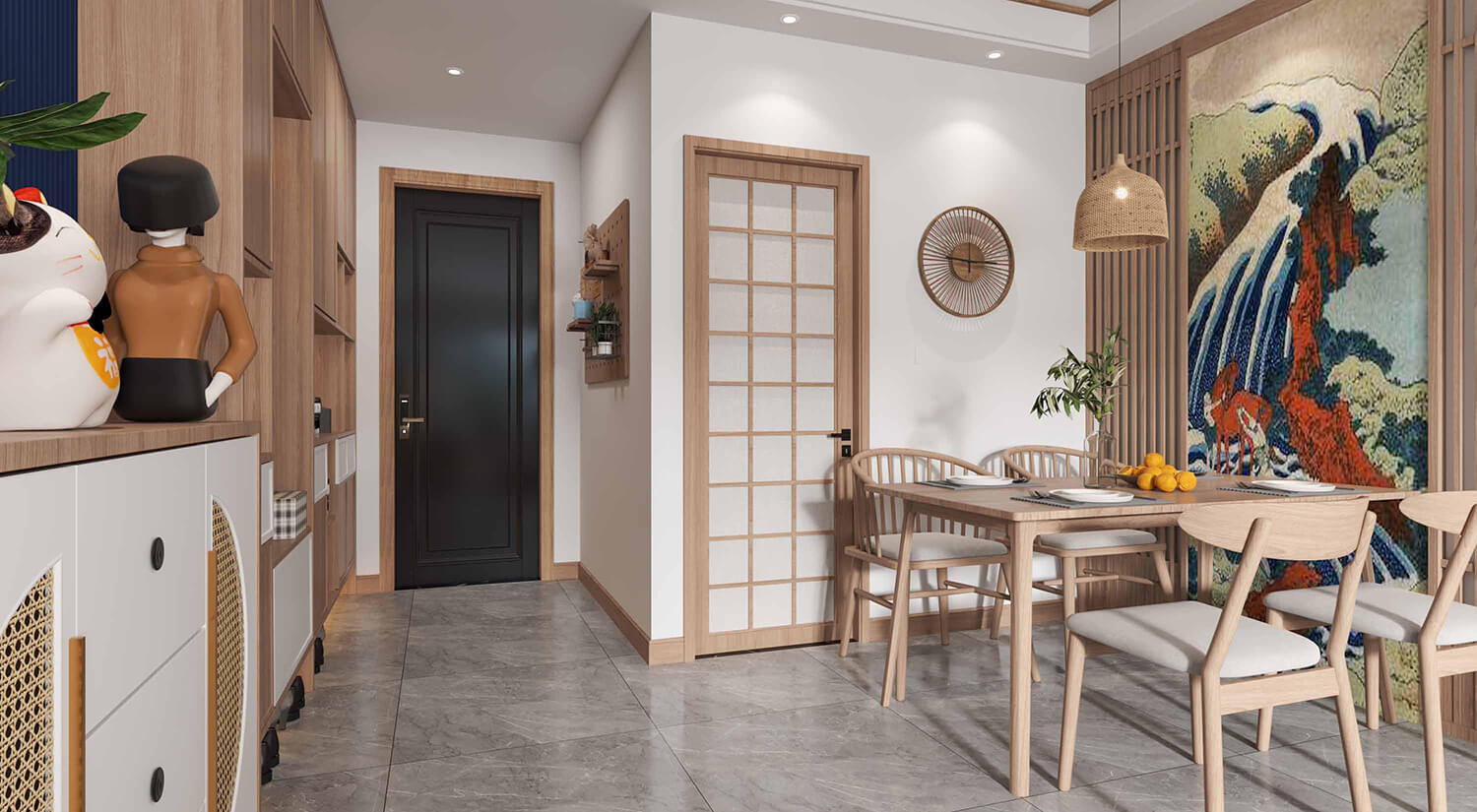 日式風格的空間布局以簡潔和流暢的線條為主要特征,強調(diào)自然光線的利用和空間的開放性。通常采用開放式布局,強調(diào)室內(nèi)空間的流動性和連貫性,將不同的空間區(qū)域融為一體。