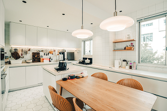 家里人都很喜歡烹飪,廚房是家庭的核心,經(jīng)常做飯洗碗時(shí)都會(huì)有兩個(gè)人以上一起操作。喜歡原木的東西,想要大的公共空間,和家庭與喜好相互融合。